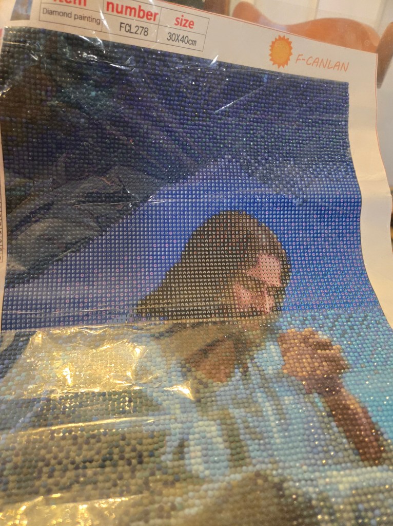 The completed painting scene is above. The next step is to get a frame for it. This will be part of my Rosary series of Diamond Paintings. I have another version of the Agony that I’ve done last year. I like this one better.