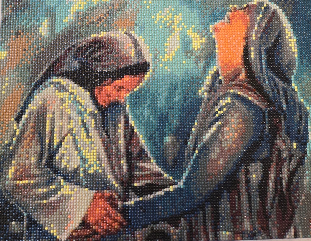 So, I went to Amazon and found one that does custom made designs from Mougins Custom DIY Art. You provide them an image and they will create a custom made diamond painting. I did this for most of the Joyful Mysteries.